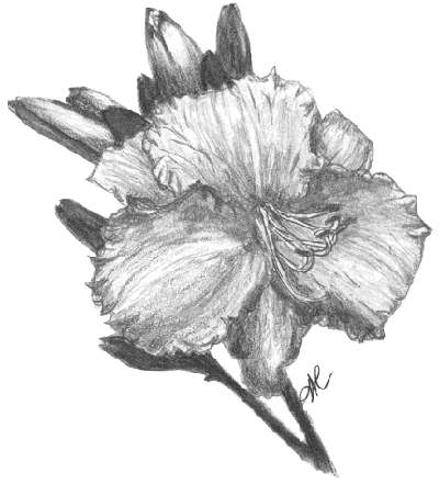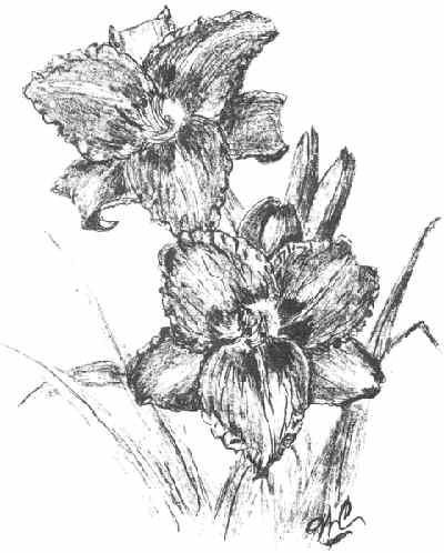 She was an accomplished artist and drew the black and white cover artwork for six of the Region 6 Newsletters 1988-91. She was also very creative in the Design Section of the Daylily Flower Shows.