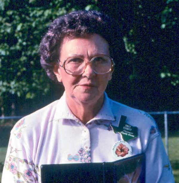 Emily Grace (Jones) Everett was born May 28, 1921, in Natchitoches, Louisiana, the daughter of Elijah. B. & Grace (Jackson) Jones. She lived there and finished college with a B. S. degree at Northwestern State University. W. D. Everett and Emily were married in 1942 in Natchitoches. After they married, they moved to the Brazosport area in Texas in the early 1940s. They lived in Lake Jackson, Texas, until W. D. retired from Dow Chemical. In October 1989, they moved back to the old home place in Natchitoches. Emily died there December 11, 1990. Emily joined the Brazosport Daylily Society about 1965 and was very active in all of its activities. She was also active in the Methodist Church and her Hobby Club. Emily's love for daylilies went way back, as her mother grew many daylilies. Emily never saw an ugly daylily. When she moved, she took daylilies with her to add to those that were already growing at the old home place. She was also into promoting the daylily in Natchitoches. Her home and garden were always open for daylily friends. She was so proud of the daylily that was named for her by Inez Tarrant in 1982, Hemerocallis 'Emily Everett', and one also named for her mother by Inez in 1983, H. 'Grace Jackson Jones'. Her mother died in the spring of 1986 in Natchitoches. Emily was one of the nicest people you will ever meet and always spoke in a soft, sweet voice (even when scolding W. D.). Gardening, traveling, church activities, love of family and her fellowman, all fit together to make this a great lady. Her life was an example of sharing, helping, and reaching out to others. |